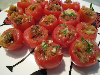 - panzanella-stuffed cherry tomatoes