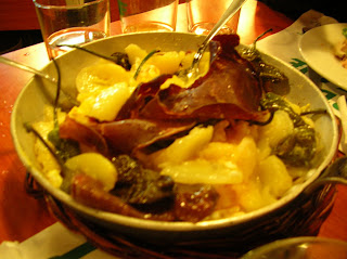 sunnyside-up eggs. Before serving, the eggs are broken, thus making them "revueltos". Everything was delicious. Unbelievable taste, quick service, and it ended up being only about 6 euros per person (we split the food between 5 of us, and there was more than enough to go around).